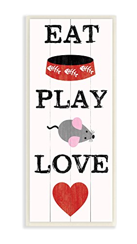 Stupell Home Décor Eat Play Love With Bowl Mouse And Heart Art Wall Plaque, 7 x 0.5 x 17, Proudly Made in USA