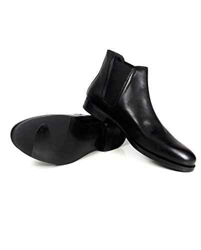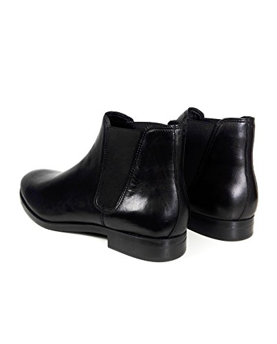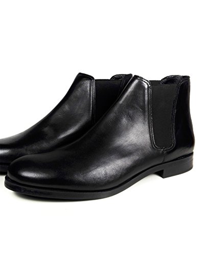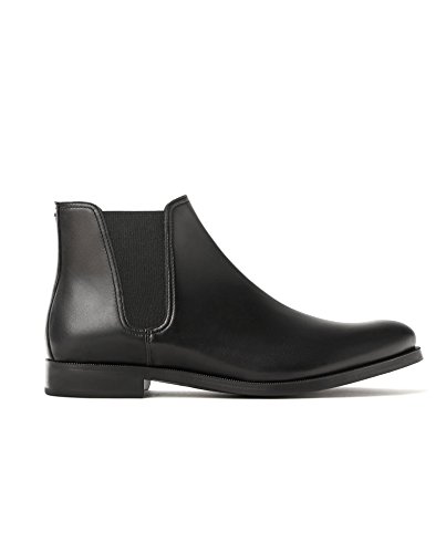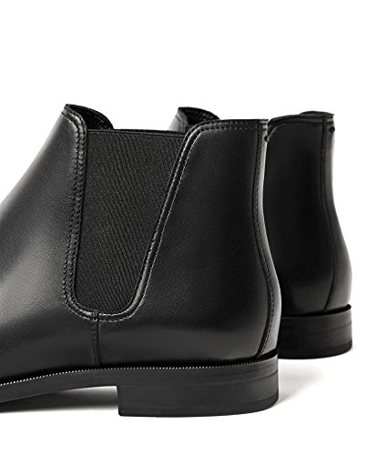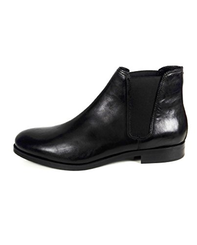 Product Description Leather ankle boots. Black. Rounded toes. Featuring double elastic panels on the sides for slipping on with ease. Official brand size equivalence for Men Shoes. Size 39 | USA 6 ? |?UK 5 Size 40 | USA 7 ? |?UK 6 Size 41 | USA 8 ? |?UK 7 Size 42 | USA 9 ? |?UK 8 Size 43 | USA 10 |?UK 9 Size 44 | USA 11 |?UK 10 Size 45 | USA 12 |?UK 11 Size 46 | USA 13 |?UK 12 Size 47 | USA 14 |?UK 13 0
