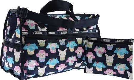 Travel in style with a LeSportsac bag. The Large Weekender bag has a zipped main closure, and features exterior front, back, and side pockets with zipped closures. It offers multiple carry options with its top handles and adjustable/detachable shoulder strap, and it includes a matching pouch with zipped closure.Feature