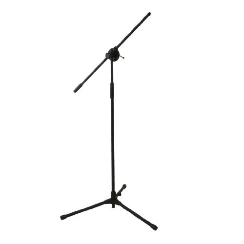 -. Feature : Tripod Mic Stand with Telescoping / Basic tripod microphone stand with telescoping boom. Boom is 19-Inch, extends to 31-Inch. Height adjustable from 40-Inch to 69-Inch. Tripod legs 25-Inch on each side / Telescoping Boom