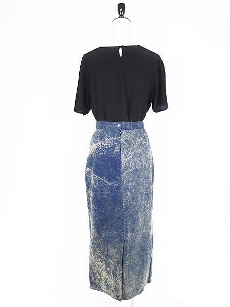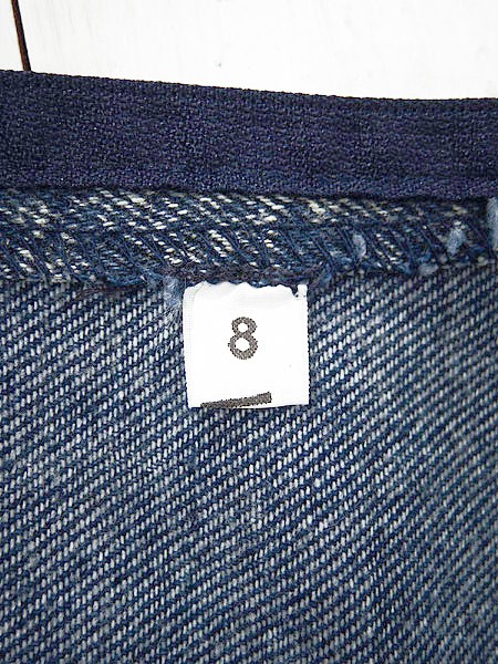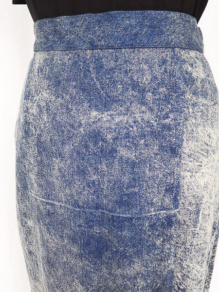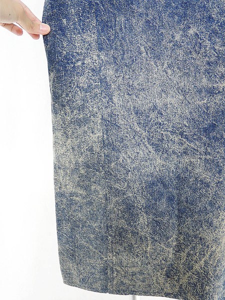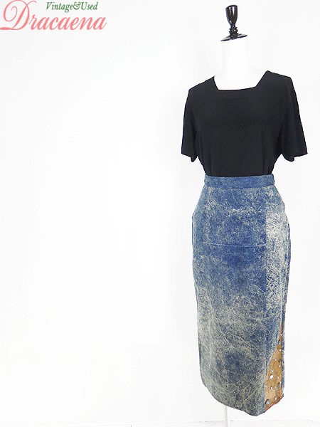 Ladies ブランド カラー青・白 メール便不可 コンディション★★★ 素材デニム地のようなハリのある素材です。 表記サイズ8 スタッフコメント裏地なし。素材表記なし。 実寸サイズ 着丈 87 cm ウエスト 27 インチ( 68 cm) スリット 31.5 cm ※ウエスト・ヒップ以外は平置き採寸【code】#c