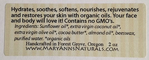 Mary Ann's Naturals Organic Handcrafted Facial Moisture Cream 2 Oz.