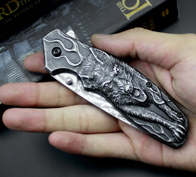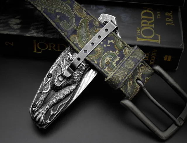 | [해외] JUFULE 원래 디자인 Vargr 진짜 다마스커스 스틸 접는 캠프 사냥 포켓 생존 EDC 도구 야외 테프론 와셔 부엌 칼 |