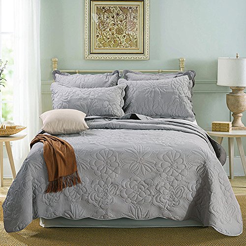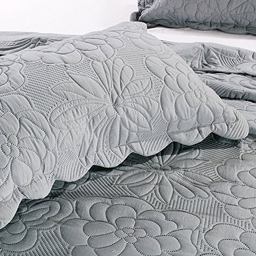 NEWLAKE Microfiber Quilt Set with Pillowcases as Bedspread, Coverlet or Bed Cover for All Season (Queen, Grey)