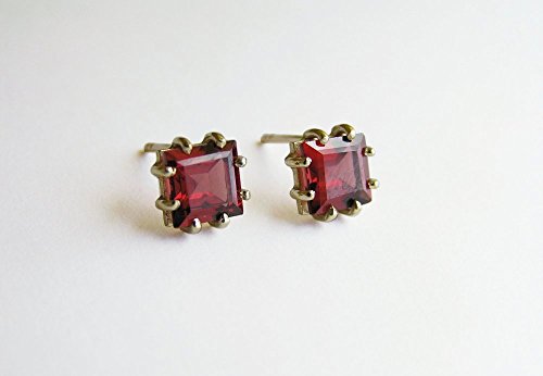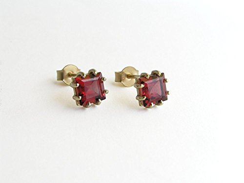 -. Title : 14k Gold Square Garnet Studs Earrings