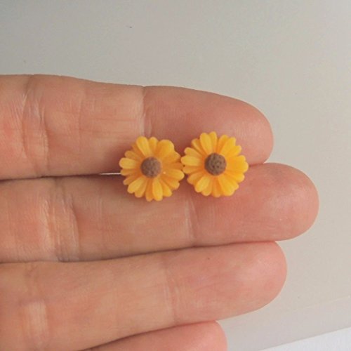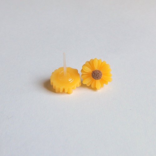 -. Title : 10mm Sunflower Earrings on Hypoallergenic Plastic Posts for Metal Sensitive Ears