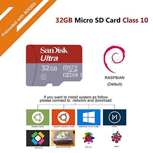 32GB Class 10 Micro SD Card from SanDisk preloaded with NOOBS is easy to boot up yur Raspberry Pi 3 with Raspbian. Up to 98M/S transfer speed and writting rate more than 10M/S.