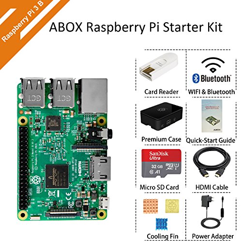 ABOX Raspberry Pi 3 Model B Ultimate Starter Kit with 32GB Class 10 SanDisk Micro SD Card and 2.5A on/off Switch Power Supply