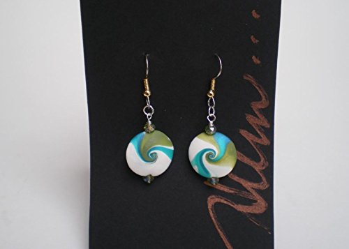 -. Title : 1 of a Kind Polymer Clay Dangle Earrings - Swirl Design