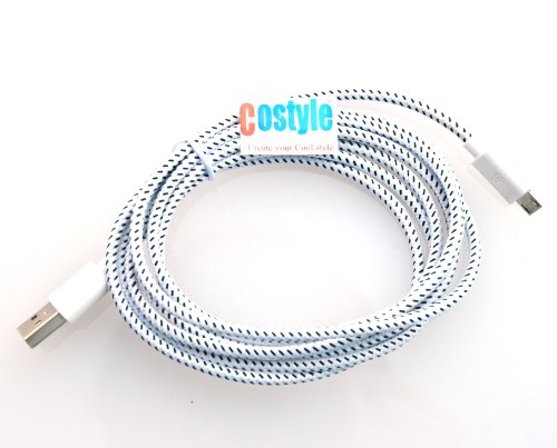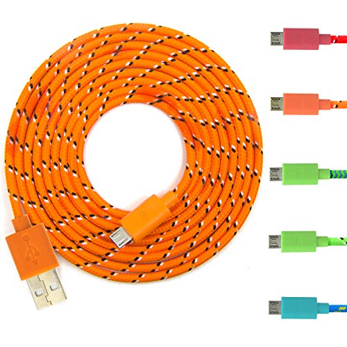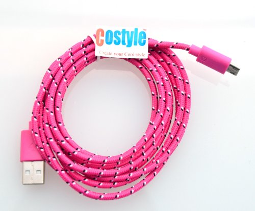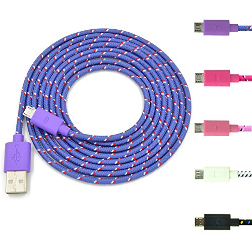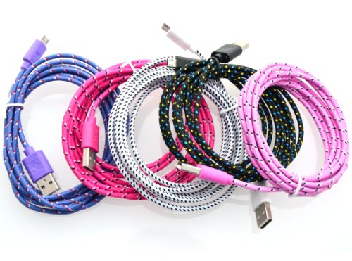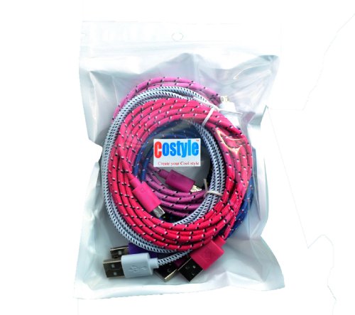 Costyle 5pcs/lot Colorful 5 Colors Ruggedized Braided Fabric/Sleeved 6 Feet FT 2M Meters Micro USB 2.0 EXTRA LONG Extended Data Sync Charging Cable Cord For Samsung Galaxy Note 2, Galexy S4, Galaxy S3, Galaxy S2, Galaxy Nexus, HTC One X, One S, Sensa