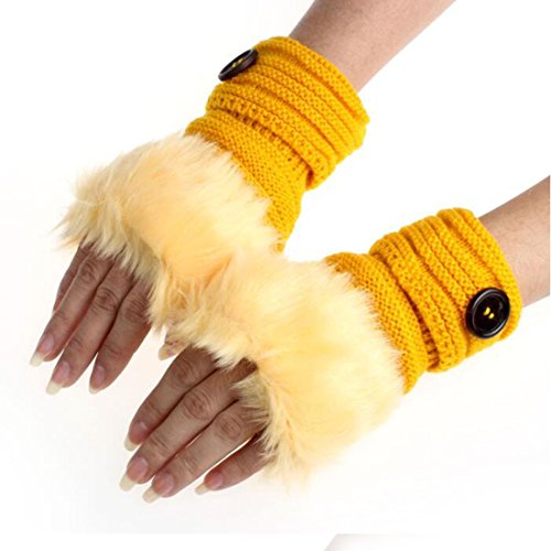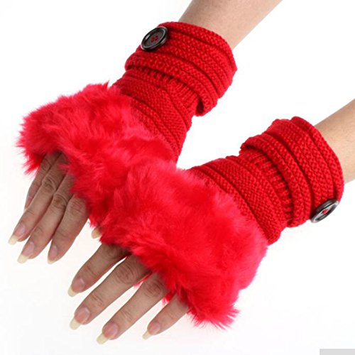 Women Winter Warm Knitted Fingerless Short Hand Gloves Red