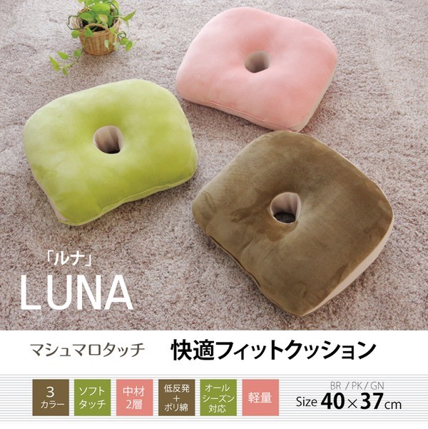 【商品名】クッション 低反発 使用 マイクロファイバー 無地 『ルナ 快適フィット』 ブラウン 約40×37cm