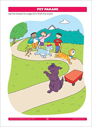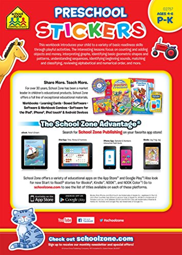 School Zone's Preschool Stickers workbook provides a fun-filled introduction to important readiness skills. The interesting lessons focus on counting, shapes, patterns, sequencing, beginning sounds, matching and classifying, alphabetical and numerical order and much more! The clear directions and interactive stickers will provide hours of educational fun for your child. (64 pages | Ages: 3-6)Feature
