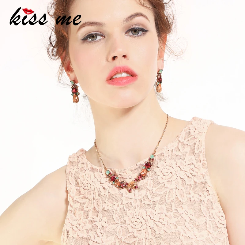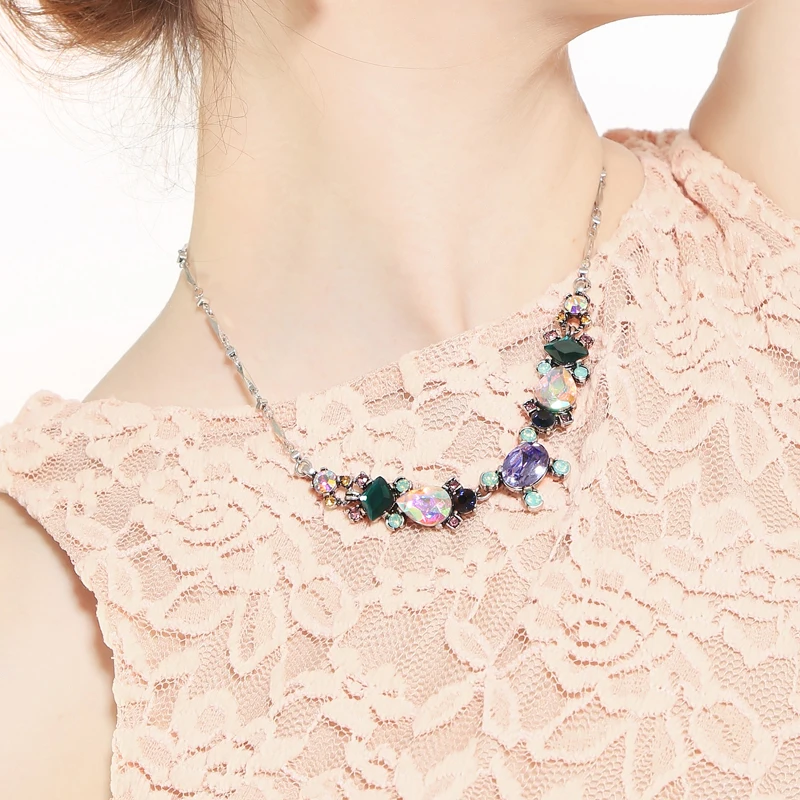 Production name ::KISS ME Red Green Acrylic Crystal Geometric Choker Necklace