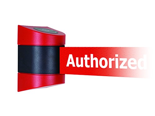 Tensabarrier 897-15-M-21-NO-RAX-D Wall Magnet Mount Red Caps, No Custom Red Webbing/White "Authorized Access Only" Magnet Belt End, 15'
