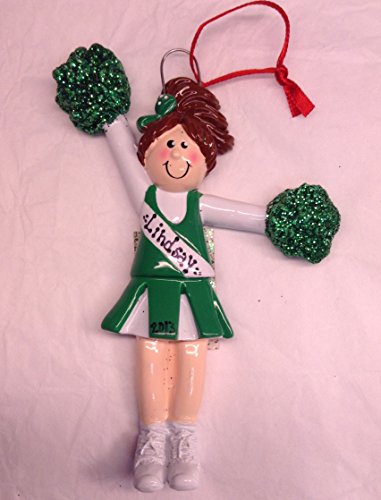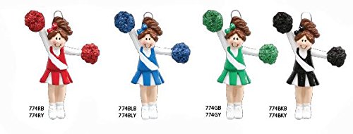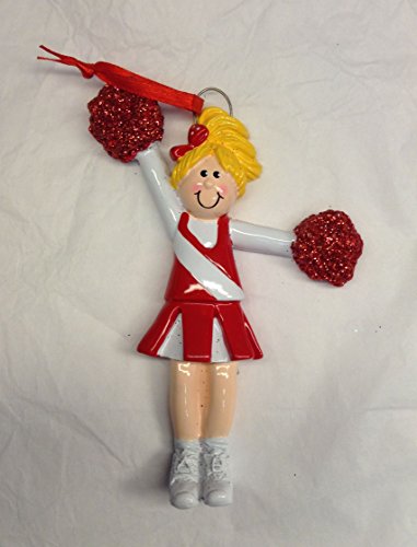 Brunette Cheerleader Girl in Red Uniform with Pom Poms Christmas Ornament