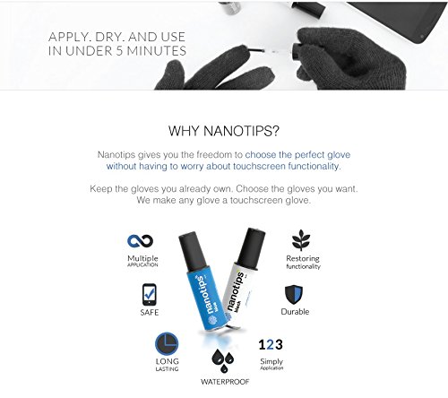Nanotips is the world's first liquid solution that can make any glove touchscreen compatible.