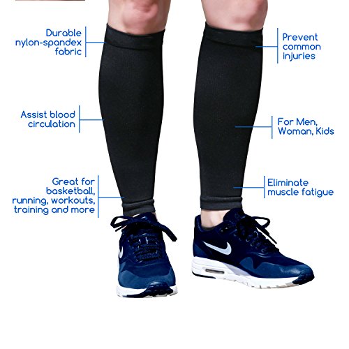✅ SUPERIOR DESIGN – Made from nylon-spandex fabric blend, breathable and durable, one-size-fits-all; best calf compression sleeve for men, women, or kids; designed for frequent use in all conditions
