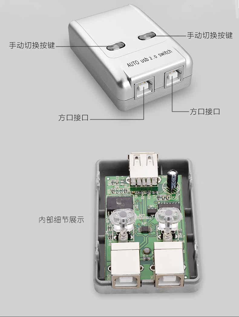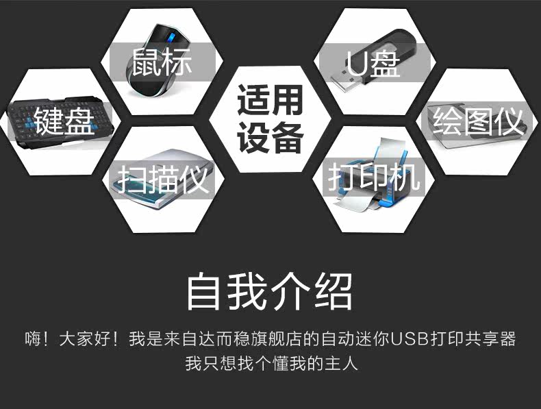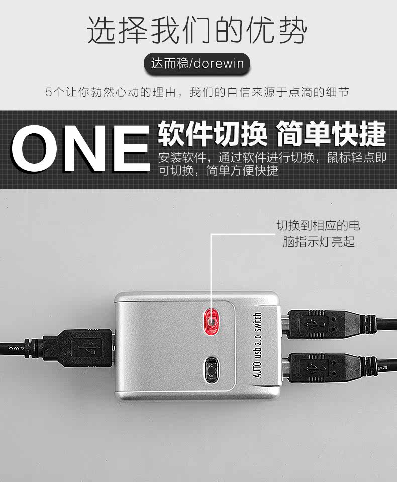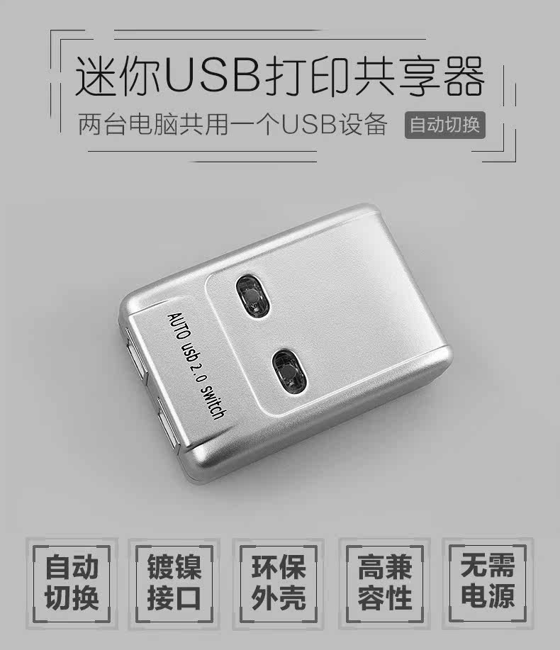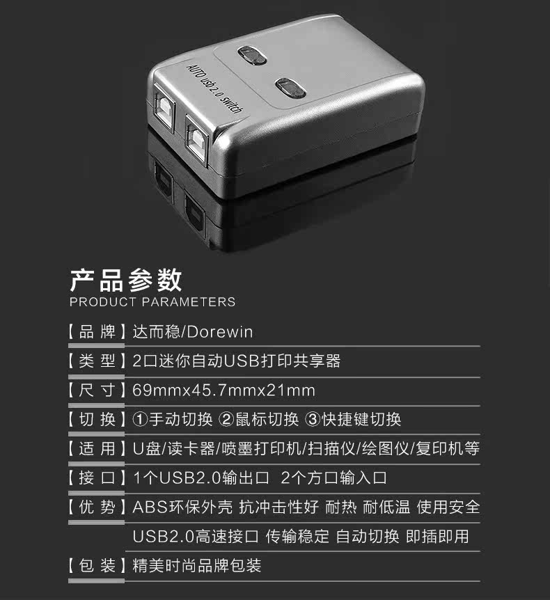 达而稳 USB打印机共享器电脑二进一出自动切换器键盘鼠标手动切换