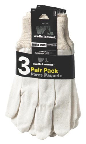 Wells Lamont Canvas Work Gloves, Standard Weight, Wearpower, Large, 3 Pack (48LF)
