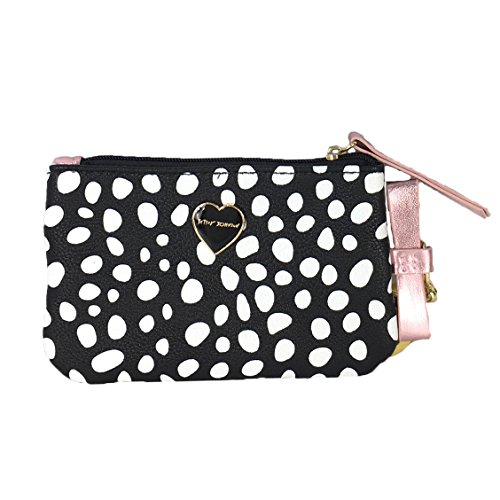 (Betsey Johnson)/Accessories/Wallets, Money Key Organizers/DIRECT FROM USA/Betsey Johnson Spot Bow Retractable Lanyard ID Case, Black/White/Pink