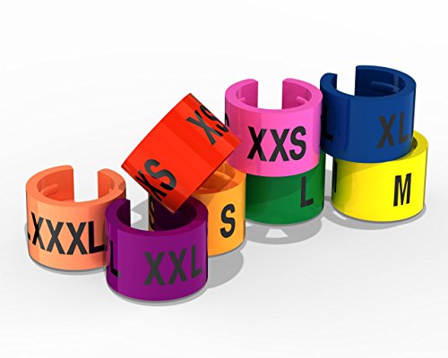 -. Feature : 50 Pieces of each size - XXS(Rhododendron), XS(Red), S(Orange), M(Yellow), L(Green), XL(Royal Blue), XXL(Grape), XXXL(Cantaloupe) / Color Coded - Makes it Easy For Your Customers to Find Their Size / Made in the USA / Each Size is P.R.Inted "3 Times" around the Sizer / Bags of 100 Also Available. Amazon Item # B06XXLG64R