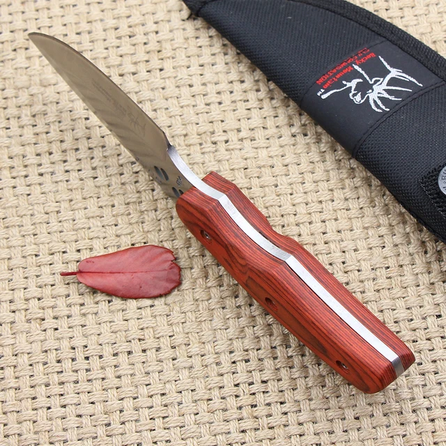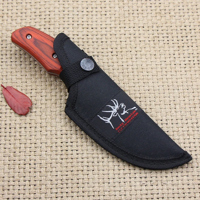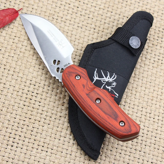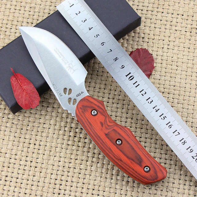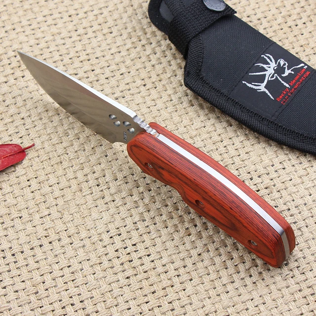 | [해외] 야외 캠핑 고정 나이프 440 블레이드 나무 핸들 작은 사냥 칼 전술 생존 칼 무료 빠른 배송 |