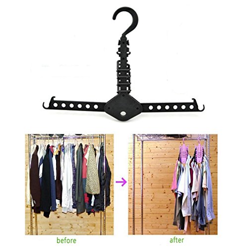 -. Feature : Using plastic material ABS, extraordinary service life, a multi-functional hanger close to 20 traditional hanger, can be stacked without space. / Fold to store it, unfold to use it, very convenient and easy / When the string is completed, but also the magic hanger at both ends of the hanging arm folded up, and instantly save your wardrobe 3/2 spac / You can classify your clothes to use this multi-function hanger / 13 racks hanging holes, 8 belts, tie storage hook, 2 thin shoulder strap women's underwear hanging hook, and when you pick clothes at a glance.