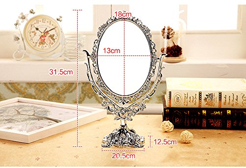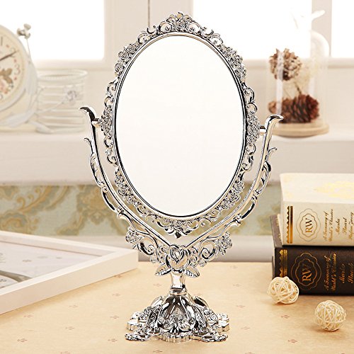 ToiM European Style Vintage Retro Portable Dressing Table Mirror Swivel Vanity Mirror, Double Sided Dressing Mirror for Dresser (Silver)