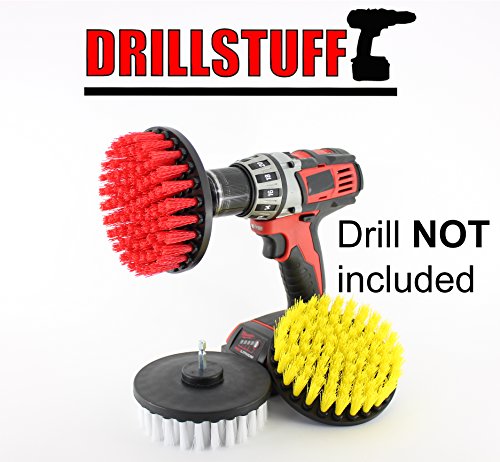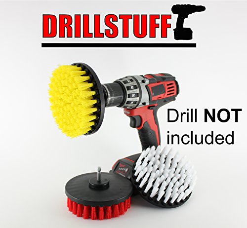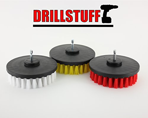 3 Piece Soft, Medium and Stiff Power Scrubbing Brush Drill Attachment for Cleaning Showers, Tubs, Bathrooms, Tile, Grout, Carpet, Tires, Boats by DrillStuff