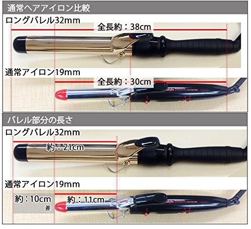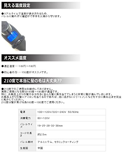 배럴 길이16cm.롱 배럴에 긴 머리카락에서도 단번에 감을 수 있는 프로 사양의고데기.MAX210℃나와 빨리 예쁘게 카루 헤어를 즐길 수 있습니다.디지탈 표시에 10℃각미노 온도 조절이 가능.코드가 360도 회전 하므로 휘감기지 않습니다. ※19mm만,손잡이가 사이에 두는 부분 뒤에 주의※ 전원 에 해당되어 전원이 끊어지는 경우 (이)가 있습니다. 대단히 수고스럽겠지만,주의 해 주십시오.