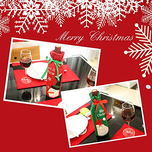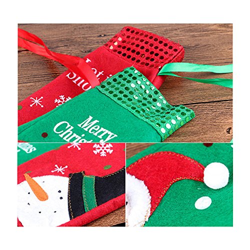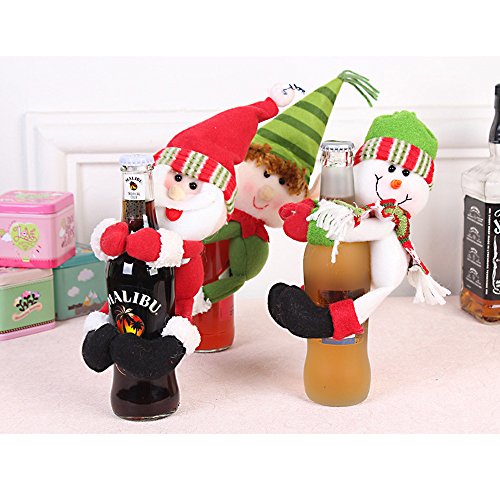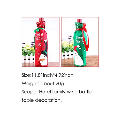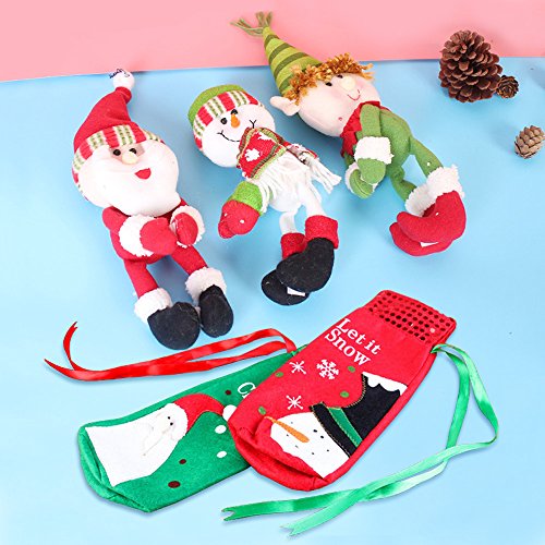 - Christmas Style: Toys -- Great Christmas table decorations for room & outdoor dinner decor & Christmas tree & dinner table. Hang them upside by your fingers. Kids and guests will love them. Wine Bottle Cover Bags -- Excellent Santa Claus & Snowman pattern & stereo fluffy small ball & red or green sequins glitters. Bright up your Christmas holiday!