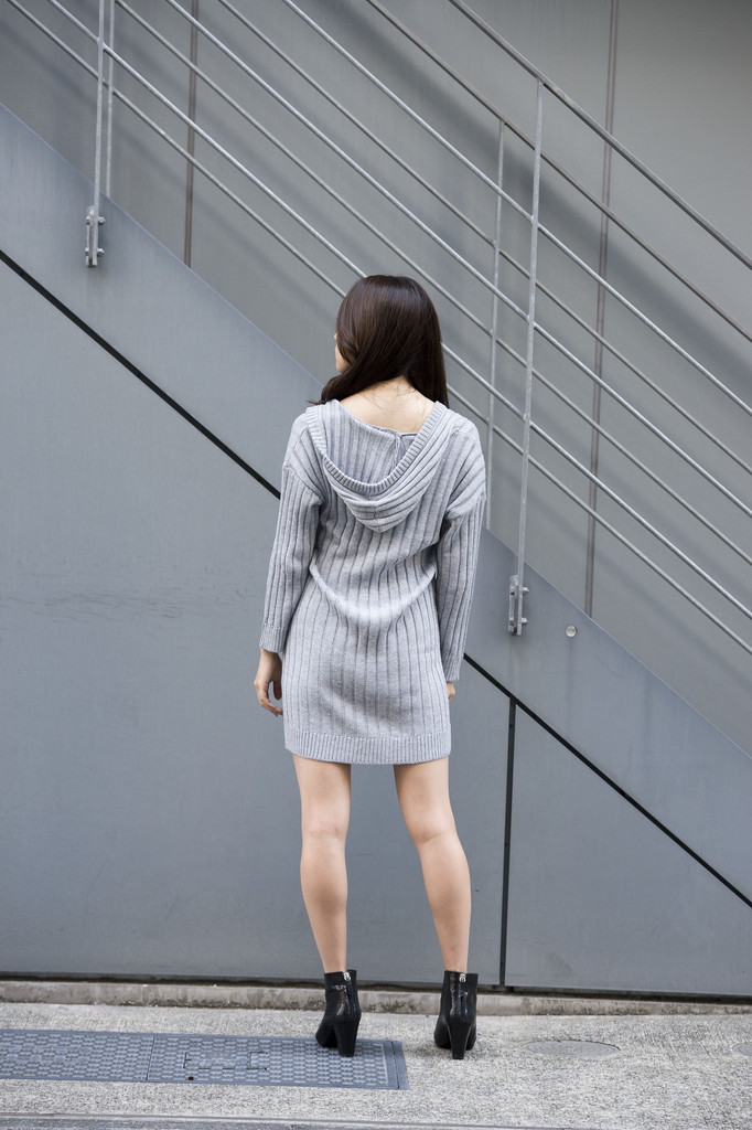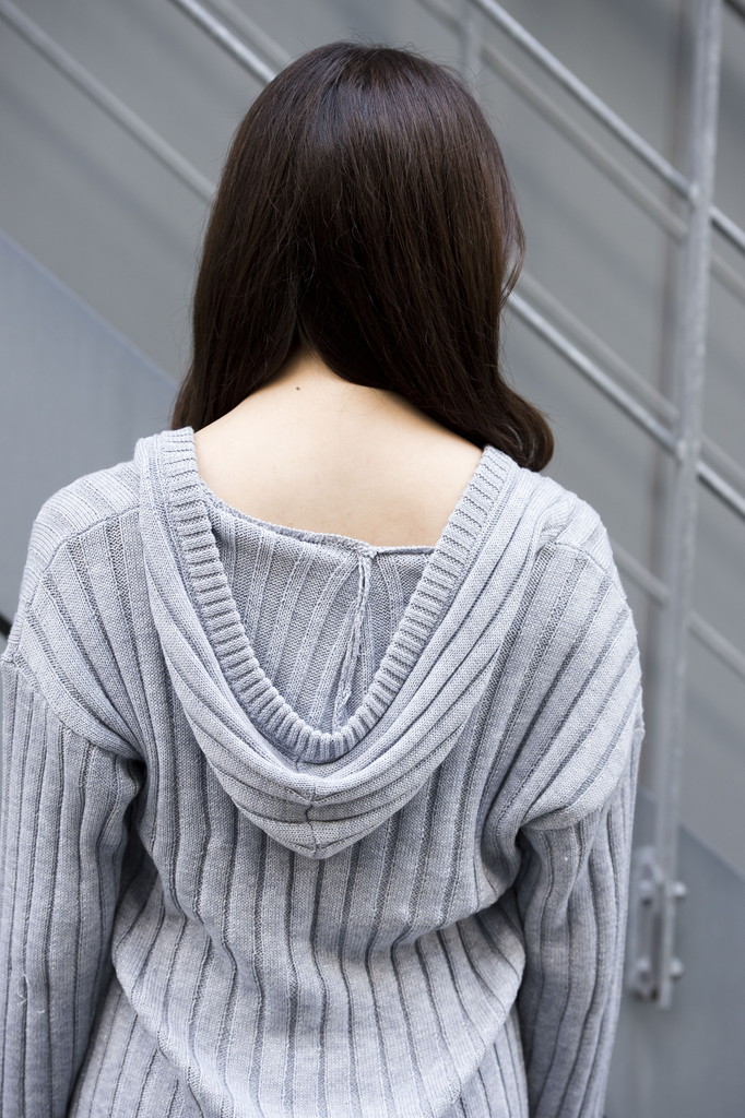 シンプルなリブ編みのパーカーワンピにスパンコールベアのインナー付きです。
