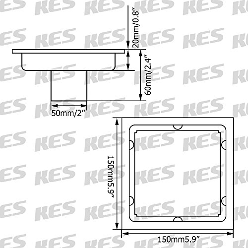 KES Invisible Tile-in Drain 6-Inch by 6-Inch SUS 304 Stainless Steel Rustproof with Strainer 2 Pack, V252S15-P2