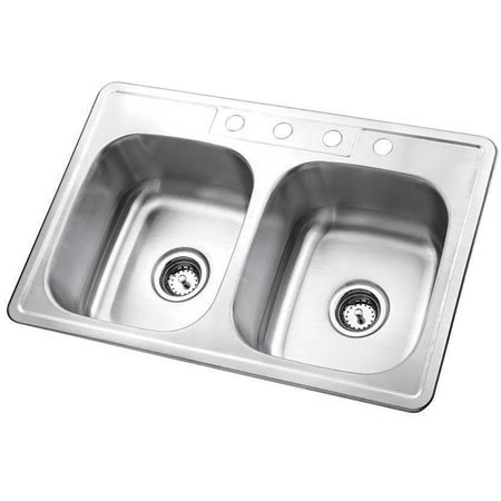 Kingston Brass Gourmetier GKTD33226 Studio Self-Rimming Double Bowl Kitchen Sink, 33-Inch L × 22-Inch W × 6-Inch H, Brushed Stainless Steel