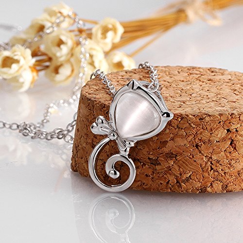 - Title : COPAUL 18k Gold Plated with Opal Cut Cat with Bow Pendant Necklace,White Gold
