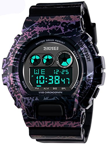 -. Title : Fanmis Men LED Digital Military Watches 50M Dive Swim Camo Purple Outdoor Sports Watch