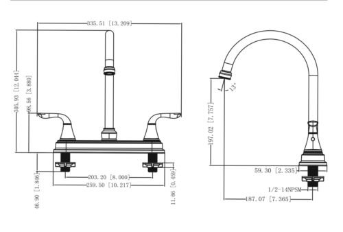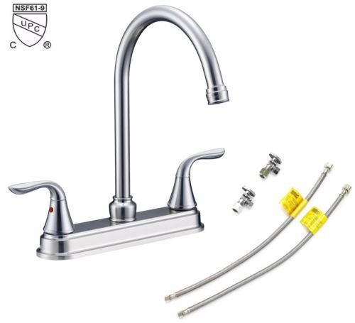 CMI 8203-802 Stainless Steel Kitchen Dual Handle Swivel Spout Spray Hose-Chrome Mixer Tap Faucets-Lead Free High Arc Stream for Commercial Residential & Home