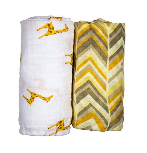 Babio Muslin & Bamboo Cotton 2 Pack Baby Swaddle Blanket Set - 47 inch x 47 inch - Yellow/White