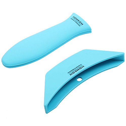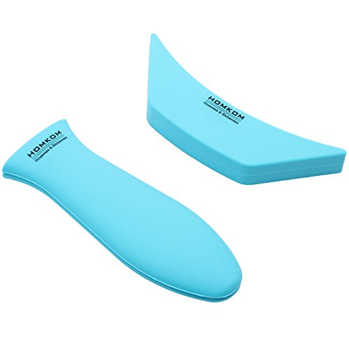 HOMKOM - COMBO PACK Silicone Assist Handle Holder for Cast Iron Frying Pans,Enameeled Cookware Handles-turquoise