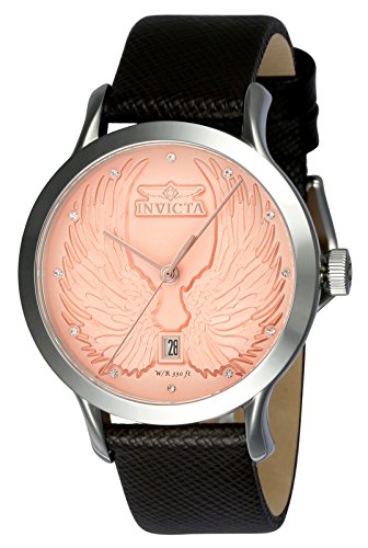 Invicta Women's 'Angel' Quartz Stainless Steel and Leather Casual Watch, Color:Brown (Model: 23185)