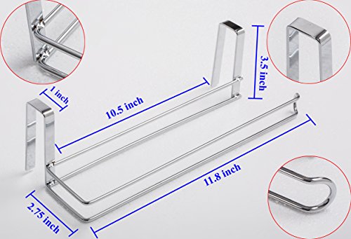 - ★DIMENSION: For kitchen tissue paper roll with max, this kitchen paper hanger fit 11.2 inch paper towel rolls or the regular size roll paper and perfect for the cabinet with the thickness of less than 1.2 inch, size: 11.2"L x 2.75"W x 3.5"H.
