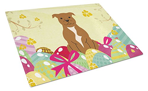 Caroline's Treasures Easter Eggs Staffordshire Bull Terrier Brown Glass Cutting Board Large, Multicolor