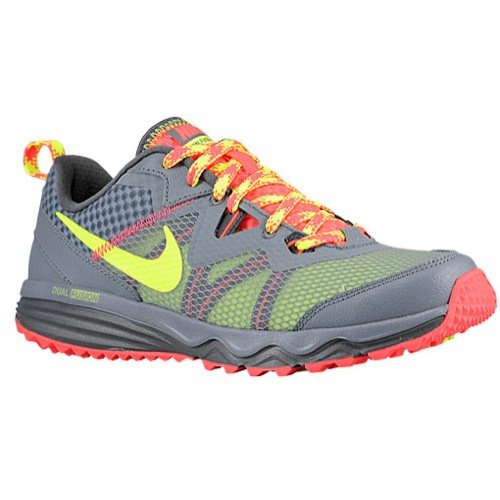UPPER: Trail ready upper with gusseted tongue and gilly lacing system for a customizable fit. Reinforced toe and heel for durability. MIDSOLE: Dual-density Phylon midsole features a firmer foam carrier and a softer foam core that delivers premium cushioning closer to your foot. OUTSOLE: Flexible outsole design with angled edges and spaces between each lug to allow for quick and easy mud shedding and optimal grip in all conditions. For the trail runner who wants the perfect blend of lightweight cushioning of the Nike Flex 2012 Run with the durability and traction of a trail shoe.Feature