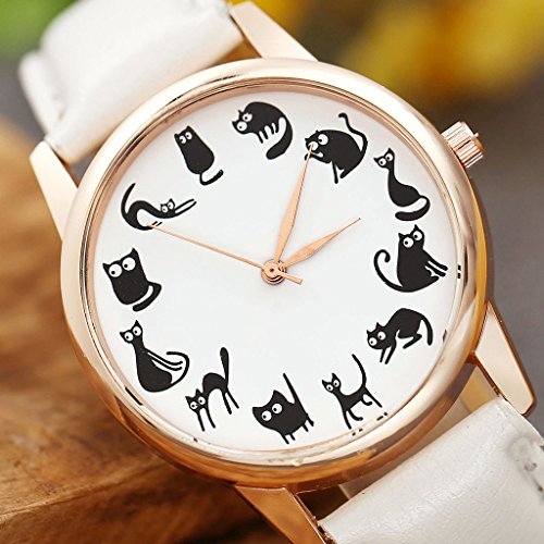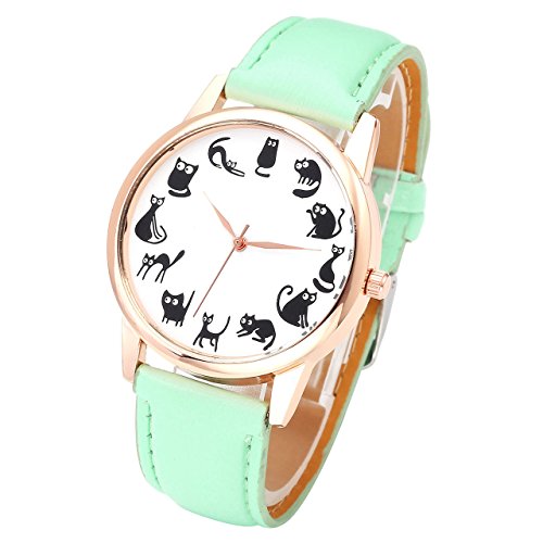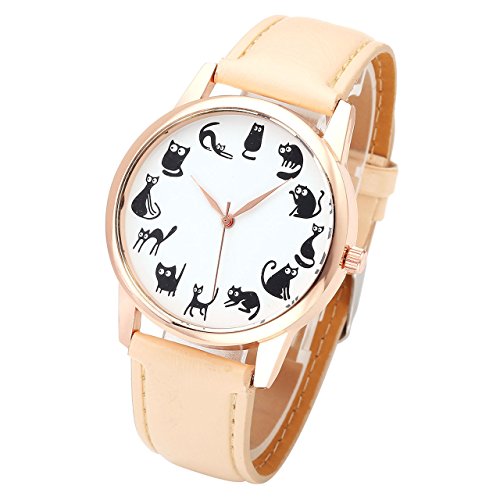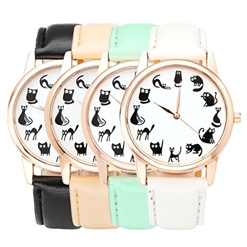 -. Title : Top Plaza Fun Animal Series Twelve Cute Cats Scale Rose Golden Case PU Leather Strap Womens Girls Quartz Wrist Watch,Pack of 4