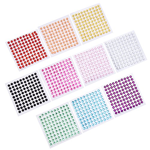 eBoot 1000 Pieces Rhinestone Sticker Sheet Crystal Diamond Sticker Self Adhesive Gem, 5 mm, Multicolor, 10 Sheets