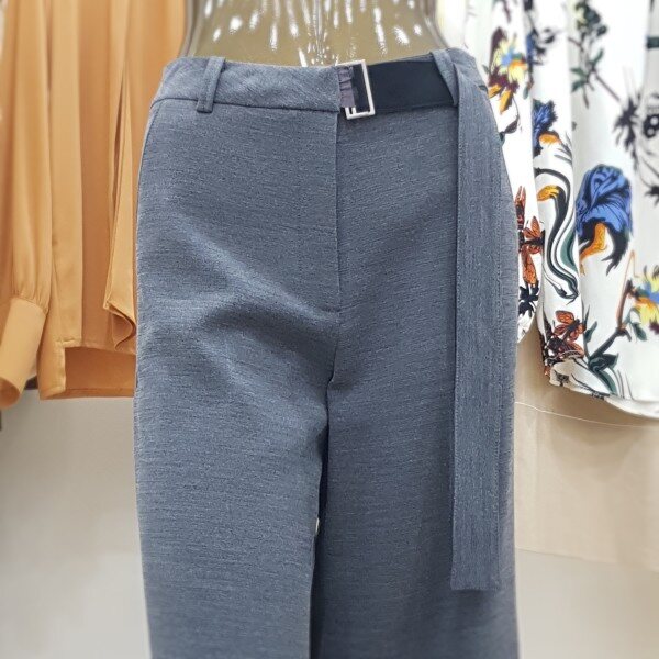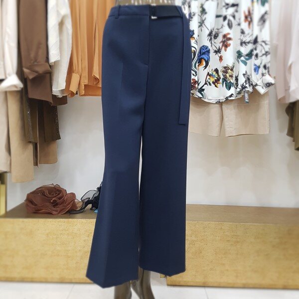 벨트가 부착된 형태의 독특한 디테일의 와이드 팬츠 입니다