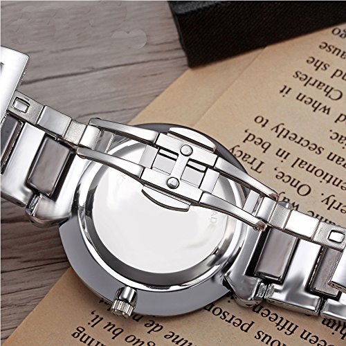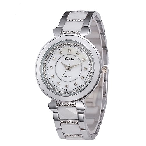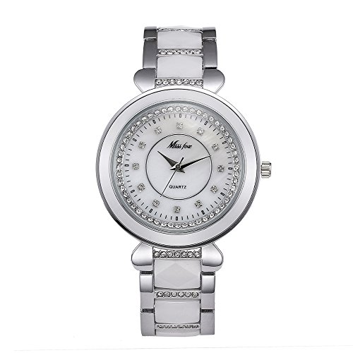 - White round face with bling diamonds around the inner bezel, and also decorated the indexes, covered by mineral glass