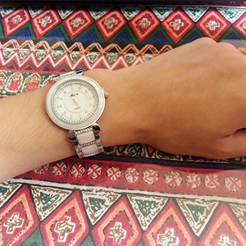Sheli Large White Tone Ceramic Diamonds Waterproof Bracelet Dress Watch for Woman, 39mm