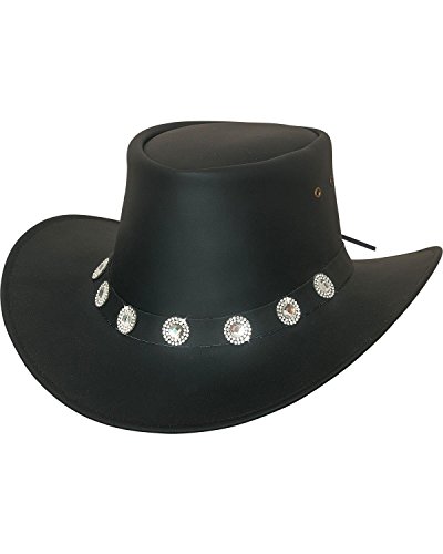 Studio : Bullhide Publisher : Bullhide Binding : Apparel Product Description Bullhide provides premium western hats for today's cowboys and cowgirls that are durable and fashionable. This hat is made with top grain leather, has crystal conchos around the hatband, has eyelets on the side, and has a Gambler crown. Pull on your best jeans, grab your favorite hat from Bullhide, and hit the trails for a long trail ride. 0